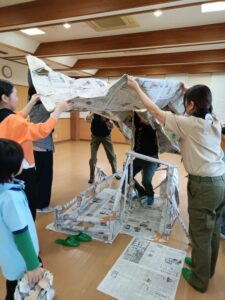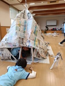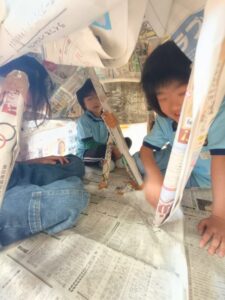 今日はたくさん新聞紙で遊びました。