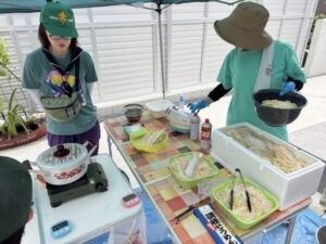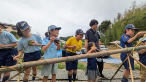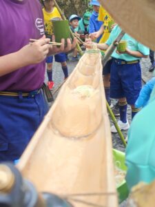 先週リーダー達が、竹林から流しそうめん用の竹を切り出してくれました。